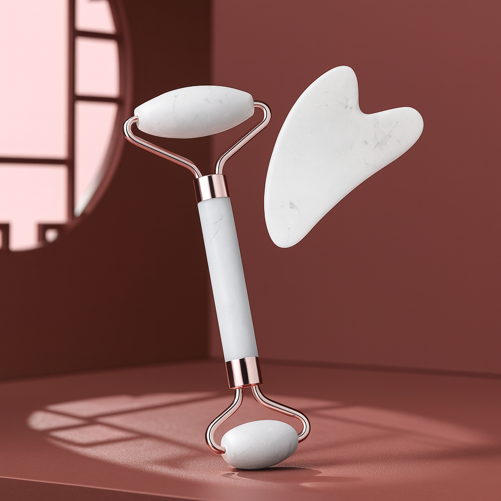 Gua Sha und Face Roller für definierte Konturen und ein frisches Hautgefühl.